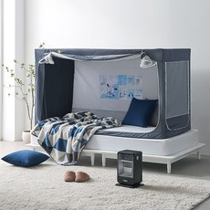 1인용 침대에 맞춰 사용할 수 있는 사각 형태의 난방텐트로, 내부에 따뜻한 공기를 가두어 체온 유지에 도움을 주며 겨울철에도 포근한 수면 환경을 만들어 주고 간편하게 설치와 보관이 가능한 구조의 제품이다.