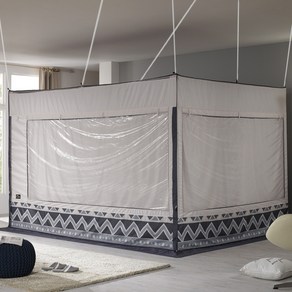 실내에서 사용하는 사각형 형태의 난방용 텐트로 침대 위나 바닥에 설치해 보온 효과를 높여주는 제품이며, 외부 공기를 차단해 따뜻한 공간을 유지해 겨울철 난방비 절감에 도움을 주고, 간편하게 접고 펼칠 수 있어 보관과 이동이 편리한 구조로 되어 있다.