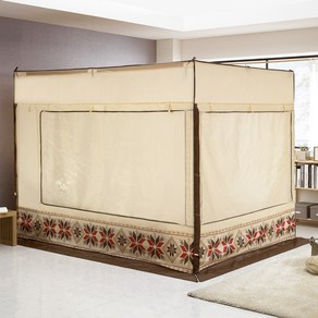 알뜨리 사각 난방텐트 베이지 커튼형 세트(스텐봉 포함) 침대 실내 바람막이 거실 수면 방한 방풍 우풍차단 텐트
