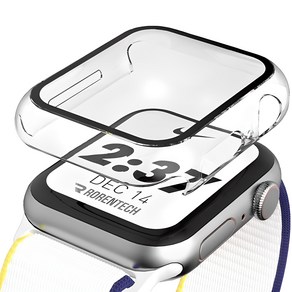 로랜텍 애플워치 호환 풀커버 강화유리 액정보호 케이스, 투명, 1개