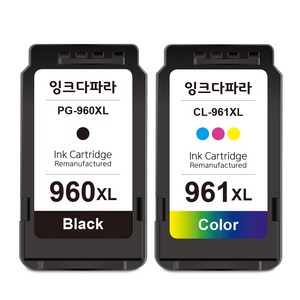 캐논 프린터용 대용량 호환 잉크 세트로, PG-960XL 검정과 CL-961XL 컬러가 포함되어 장시간 인쇄가 가능하며, 선명한 색상과 안정적인 출력 품질을 제공합니다.