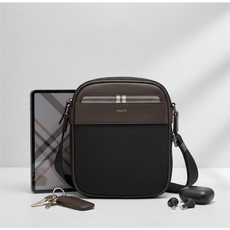 상단 가죽 배색과 실용적인 디자인이 돋보이는 남성용 데일리 크로스백으로, 소지품을 깔끔하게 수납할 수 있으며 선물용 포장도 가능한 제품입니다.