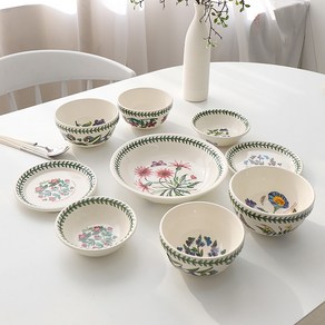 포트메리온 보타닉가든 2인용 9피스 식기세트로, 5종의 다양한 식기로 구성되어 실용적이며, 랜덤 발송으로 다양한 디자인을 즐길 수 있고, 플로럴 패턴이 식탁을 화사하게 꾸며주며 내구성 높은 도자기 재질로 제작되어 전자레인지와 식기세척기 사용이 가능하다.