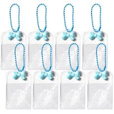 블루 컬러로 제작된 미니 포토 홀더 키링으로, 작은 포토카드를 안전하게 보관하며 휴대할 수 있는 8개 세트입니다.