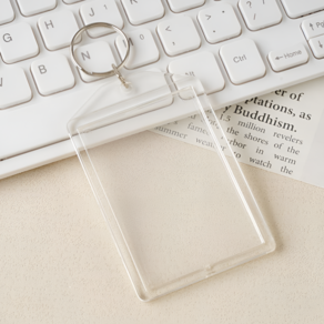 투명 아크릴 소재로 제작된 포카홀더 키링으로, 포토카드나 증명사진을 보호하며 가방이나 열쇠고리에 간편하게 부착할 수 있는 제품입니다.