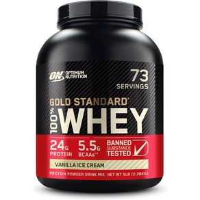 옵티멈뉴트리션 골드 스탠다드 웨이 프로틴 단백질 보충제 바닐라 아이스크림, 1개, 2.26kg
